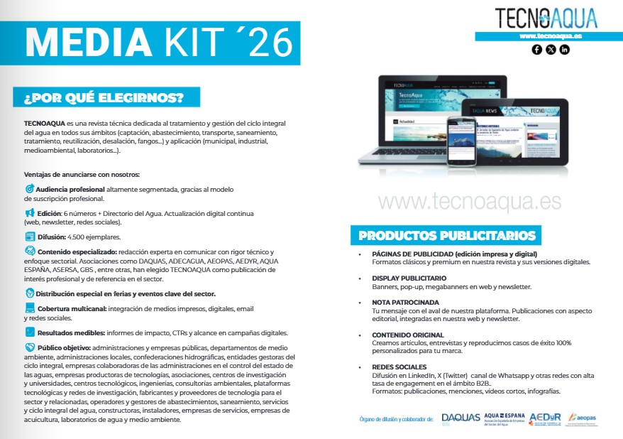 Publicidad para empresas y profesionales dedicados al tratamiento y gestión del ciclo integral del agua en la web, la revista, newsletter, redes sociales, etc. de Tecnoaqua